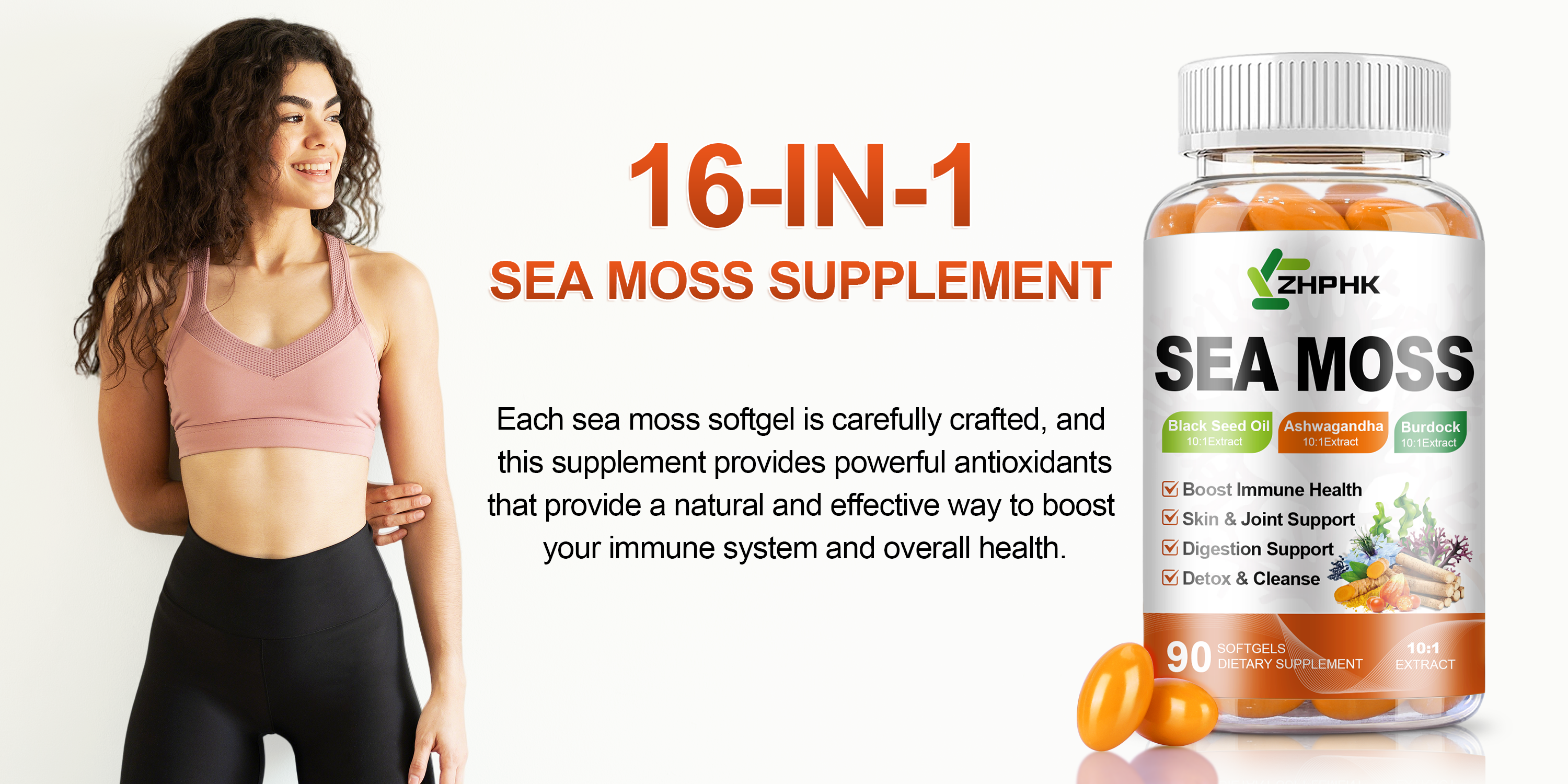 Organic Sea Moss Softgels with Black Seed Oil, Ashwagandha, Burdock, Turmeric, Elderberry, Omega 3 for Immune System, Skin, Joint, Energy, Gut Support 90-Count, 45 Days Supply