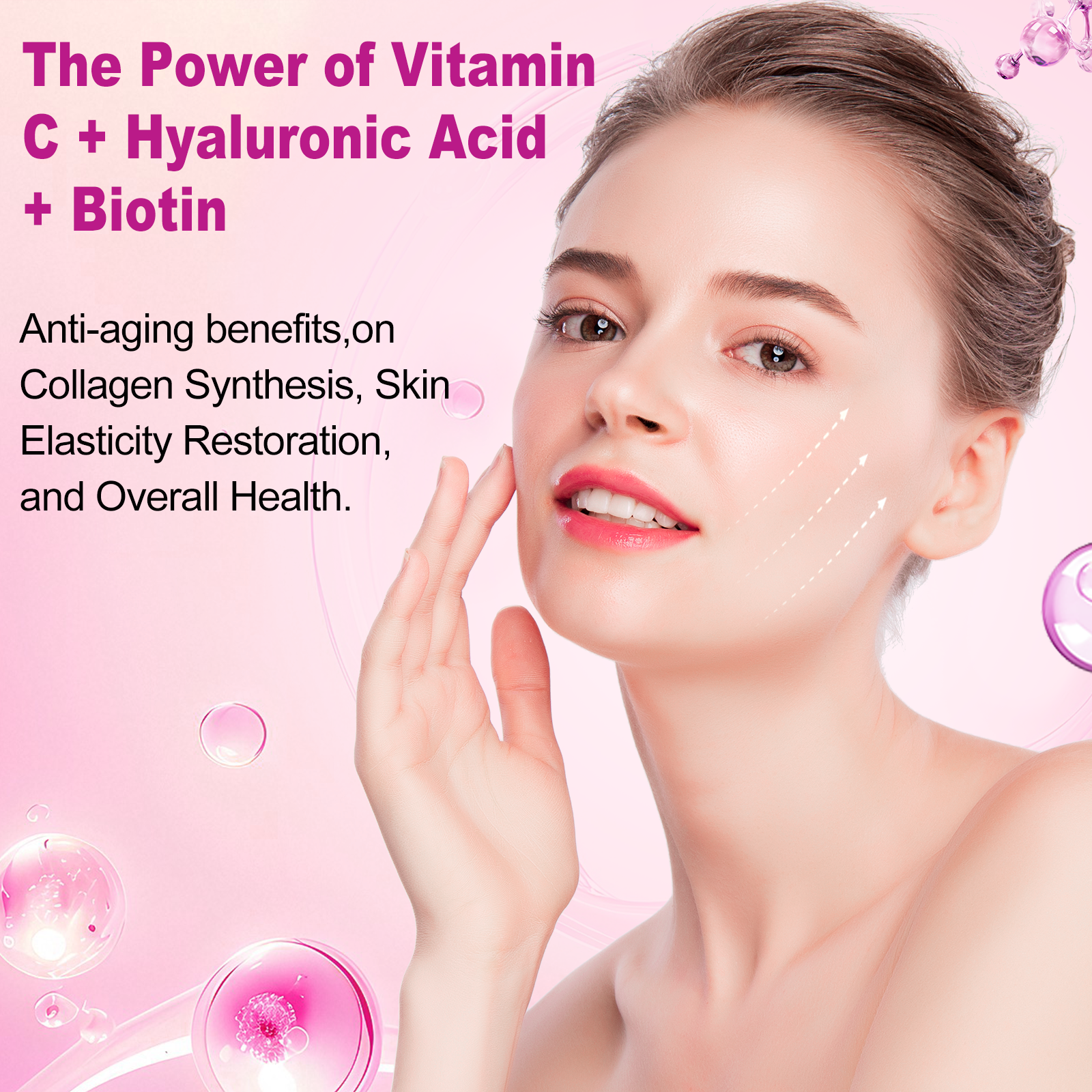 - ANTI-AGING BENEFITS: Providing a combination of collagen, as well as hyaluronic acid, vitamin C, and Biotin. Designed to work together in the body to retain water, keep skin tissue well lubricated Promotes skin elasticity, reduces fine lines, and supports anti-aging for a youthful glow