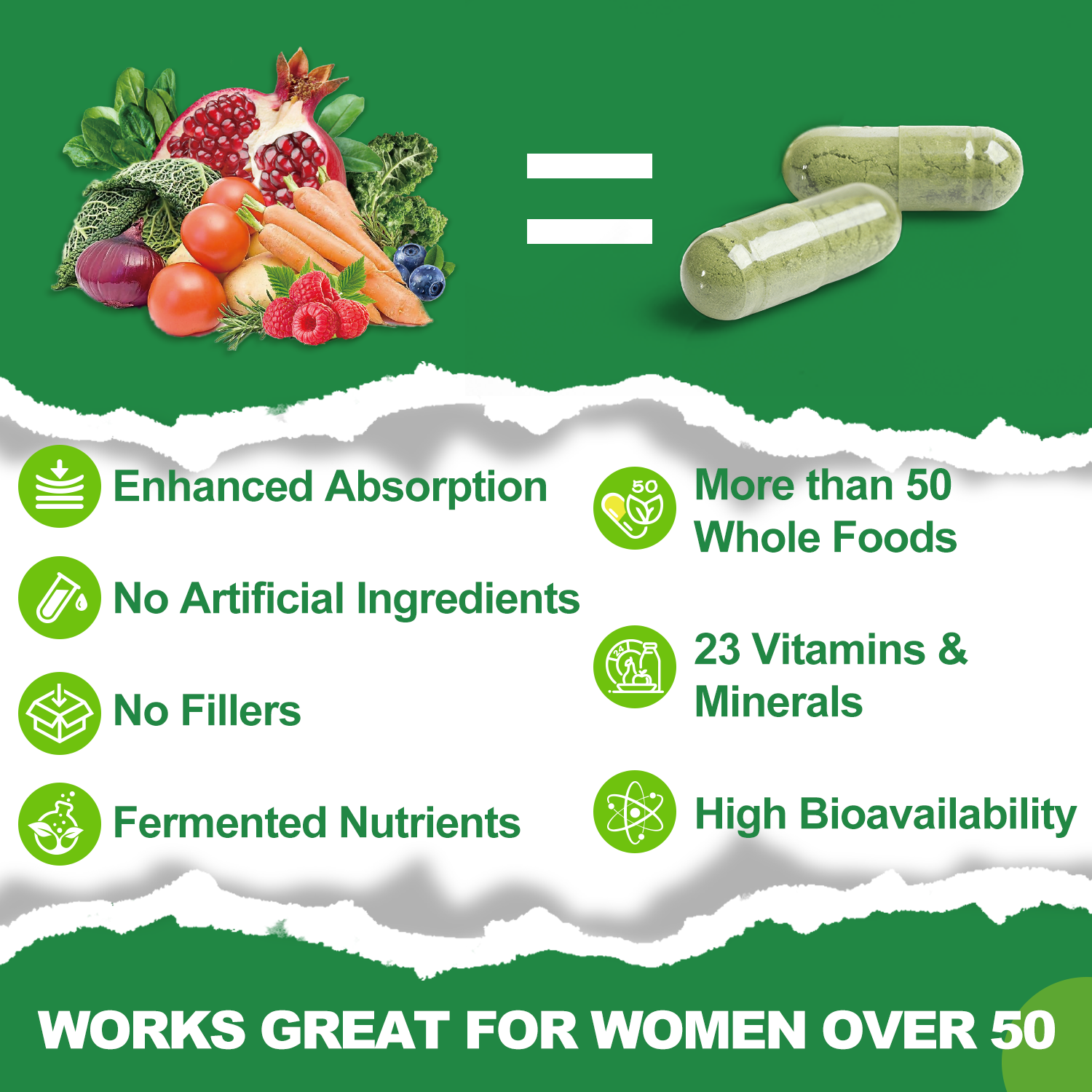 Multivitamin for Women 50 and Over, Whole Food Multivitamins Minerals Organic Extracts Women's 50+ Multivitamin for Energy Support, Nourish Hair, Skin, Nails Health